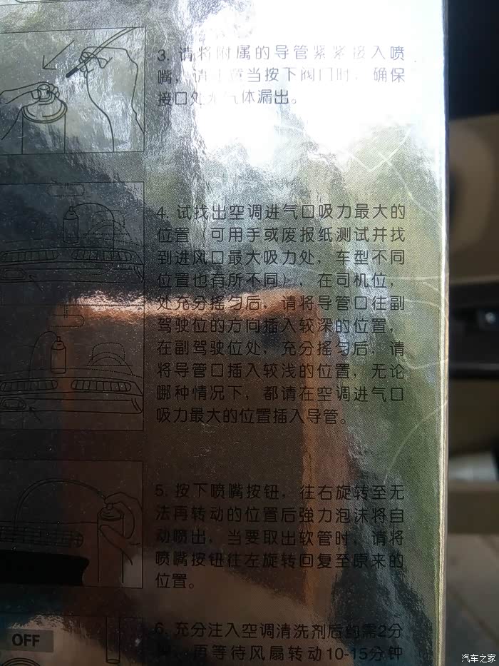 个人觉得如果这个清洗剂,多两个清洗方法的说明,多两种清洗的方案,然后在严谨一点,让车主取出来空调滤芯,那样估计会是一款不错的产品的!
