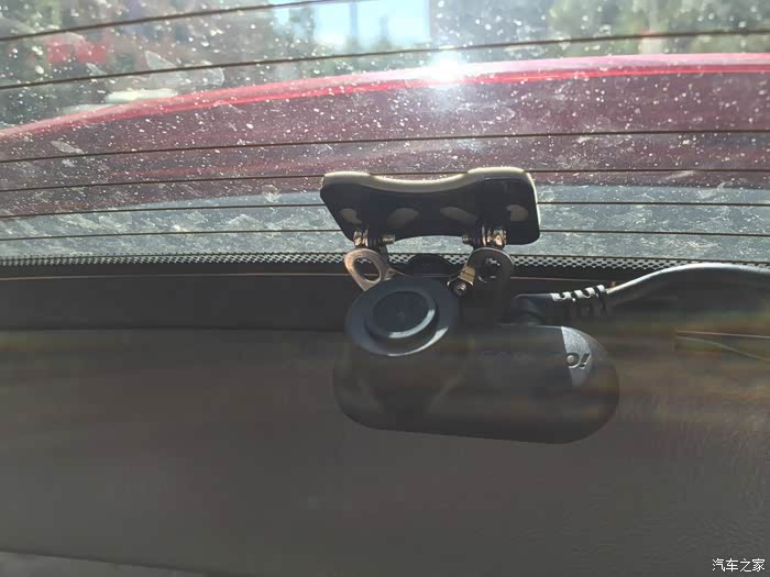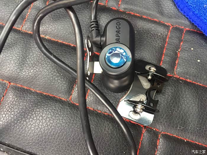 记录仪自带皮筋绑带,接线先从后镜头开始吧。