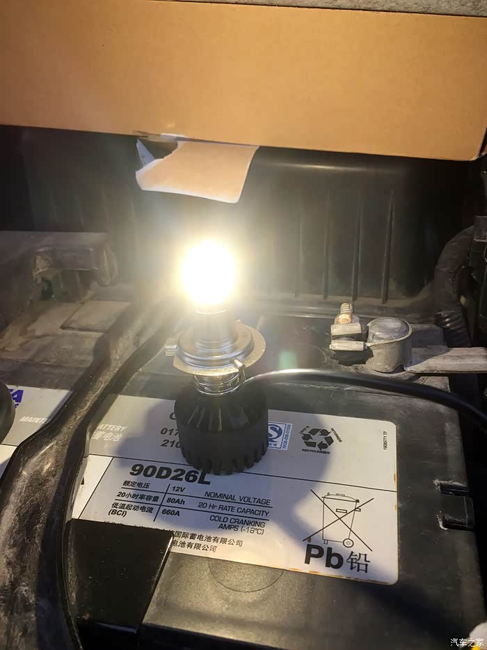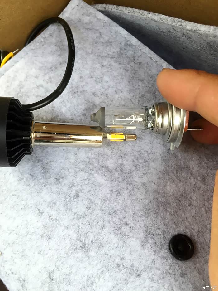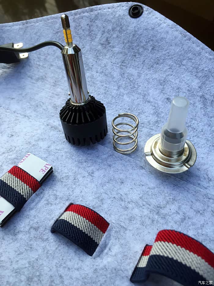 回到之前那句话,不怕不识货,就怕货比货,LED大灯灯光种类繁多,到底哪种适合自己呢,只有一试,方出结果。我将左边的原厂卤素灯泡拆下来,换之前那款某牌的LED大灯灯泡,不比不知道,一比吓一跳。原厂某牌的LED大灯灯泡是这么的白。而且好像散光比较厉害