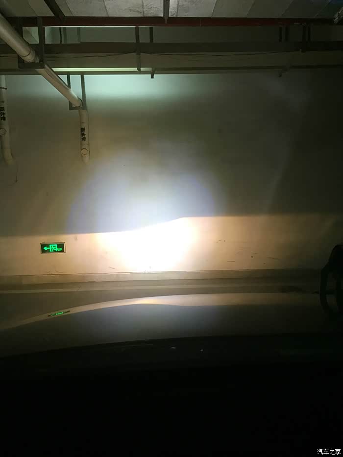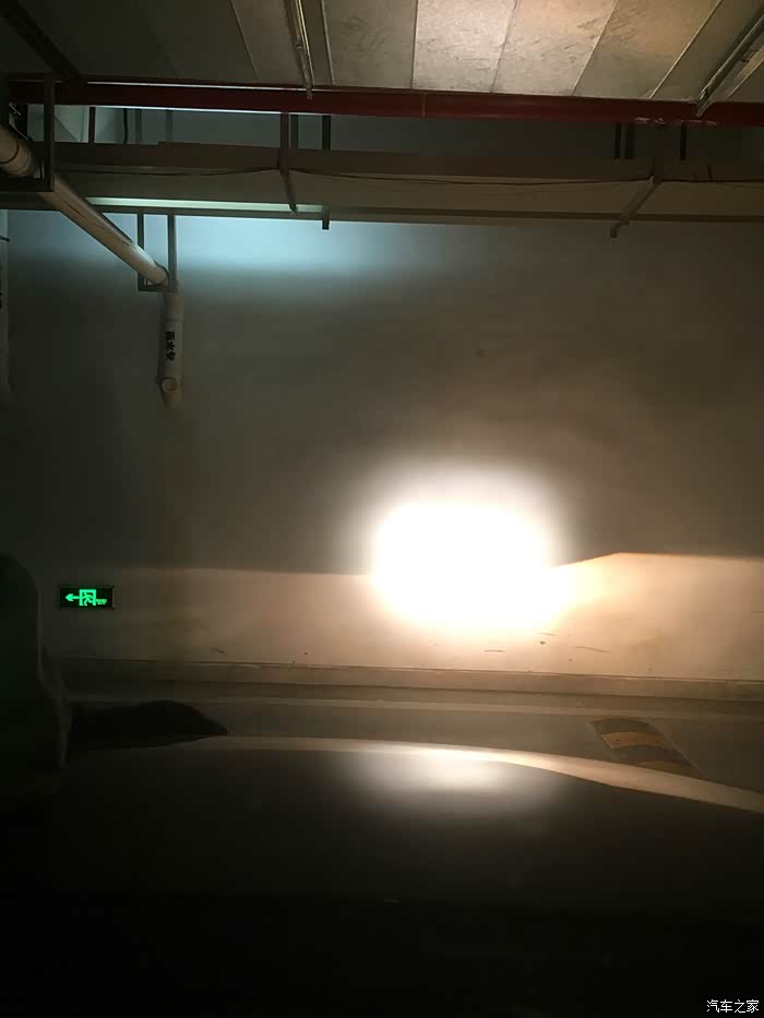 为了更好的完成测试,我把车辆开往地下停车场,进行左右对比,先打开近光灯。