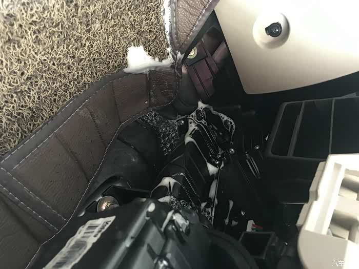 因为没有准确的确定外进风口的位置,所以本次清洗是从内进风口、也就是空调滤芯、鼓风机上部位置喷入清洗剂。
