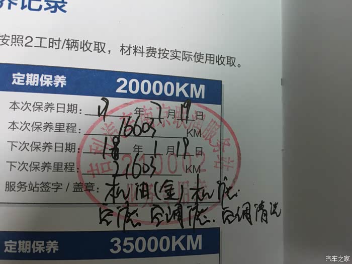 之前保养得记录,上面时间日期公里数项目都在,