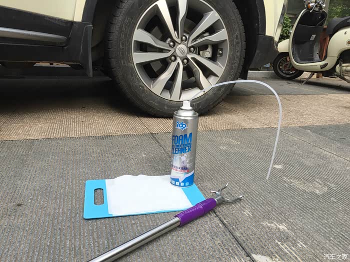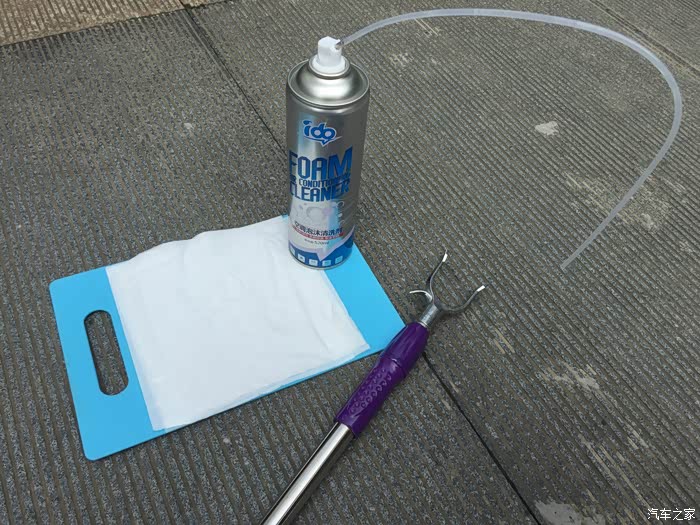 装上大长管子,这里要说明一下很多的空调清洗剂佩戴的管子是非常短的,这个管子是我之前用的那个至少长出一半还多,