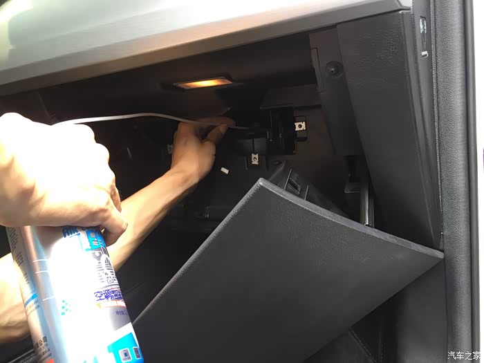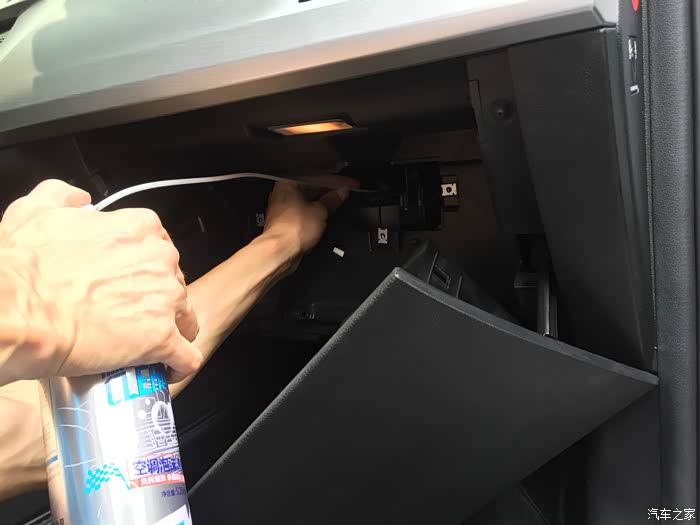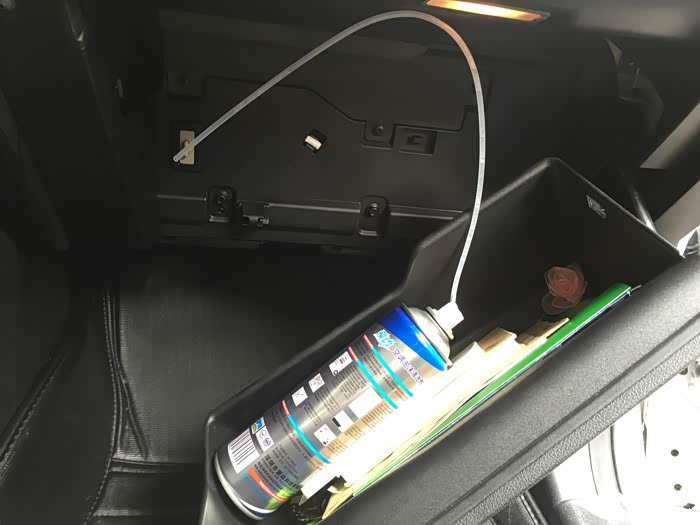 使用说明来一张,这里要注意的是有些车型的进风口大部分都是在前档玻璃下面,如果不好拆或者不会拆那么还是在老老实实的拆手套箱吧,毕竟清洗的时候还是要拆开拿下里面的空滤,而且这里也有一个进风口,一定要记得找到进风口千万不要一次打进去太多,要慢慢的一点点的打进去,否则打太多会将里面的电路版块干烧掉,那就搞大了