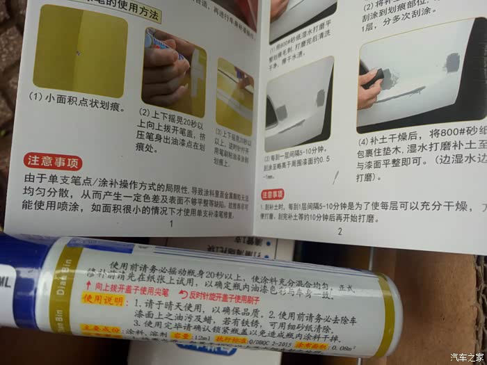 进入正题: 小刮擦,小划痕不可避免,别说开车时不小心伤到,即使你停在车位里也不可避免的出现,这种小划痕最烦人,喷漆用不上,不喷小划痕经过风吹雨淋日晒逐渐就会变大,变深,生锈腐蚀,网上流传指甲油跟车漆是一样的,试了一下先不说效果,那气味呛死人,涂抹效果不显著,流挂,看着不美观,自喷漆不好掌握,一喷一大片,遮住又会有很明显的色差,还好有点缤划痕修复补漆笔,解决了一直以来所困扰的难题。