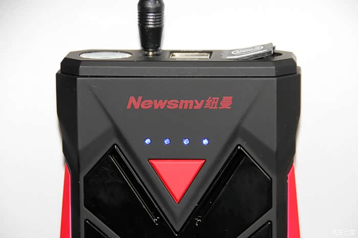 红三角是启动宝的电源开关,也是照明灯的开关,上面蓝色指示灯是电量指示灯