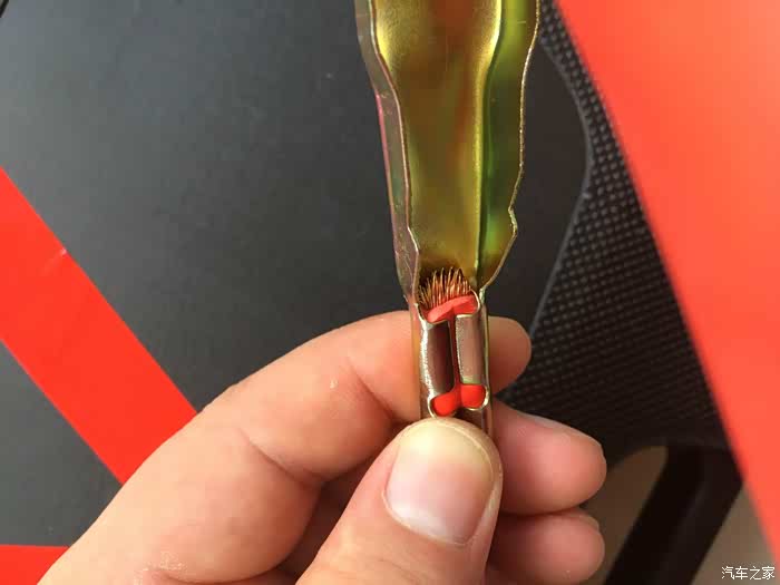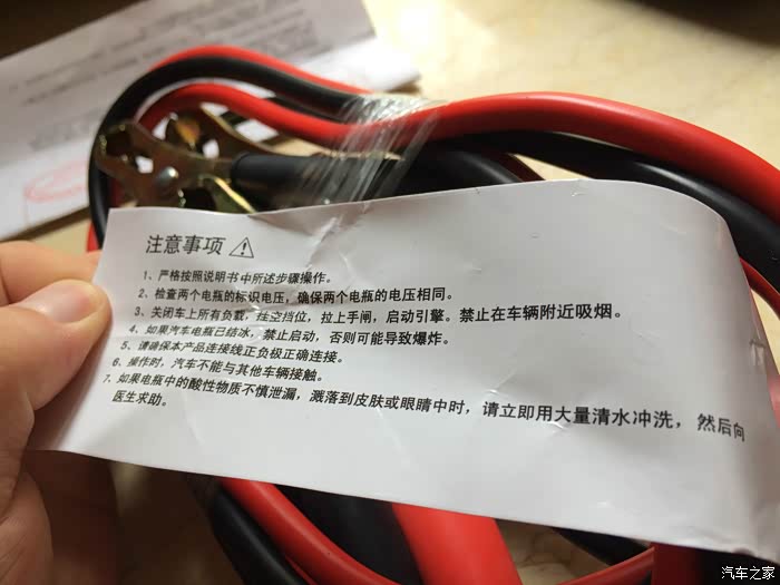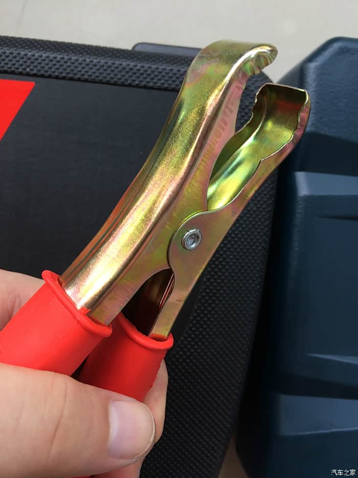 拉开夹子上的护套,看到搭电线的绝缘层很厚,能够很好的保护使用安全,但铜丝相对来说比较细,普通家用车使用应该可以,但启动时用电量比较大的车还是慎用。