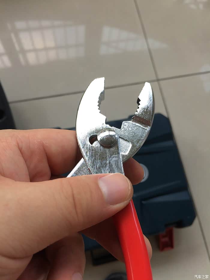 虎钳是一个比较实用的工具,我以前也用过一把,比这个要大,很好用,这把稍微有点小,用来操作进气管管夹可能比较吃力,尤其是女生,不过女生一般也不会干这种活,也就不纠结了。