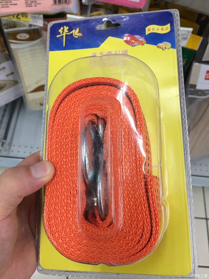 这个是我在超市拍的价值50块的拖车绳,拖拽重量为3吨。