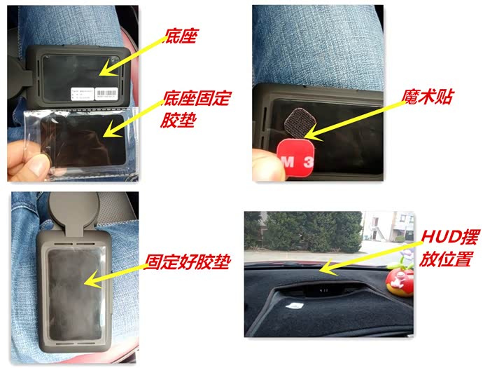 固定设备底座,因为我的仪表盘上面有避光垫,所以固定底座的时候,我用了两个魔术贴,自备的。
