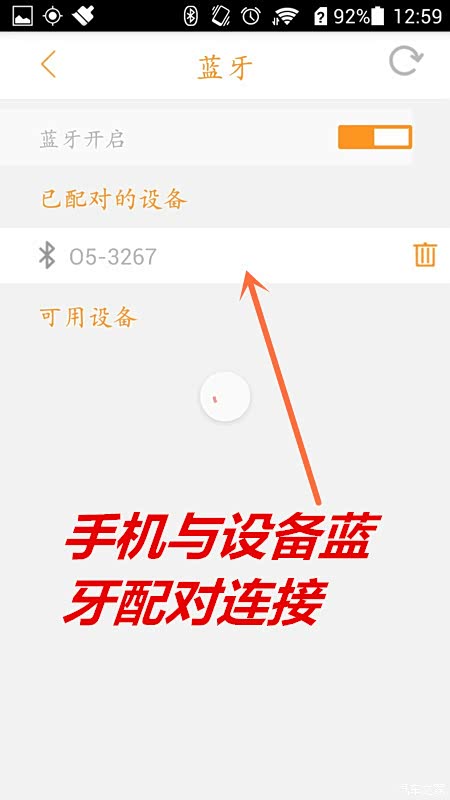 手机与设备通过蓝牙配对的界面,手机蓝牙连接设备成功后才可以读取设备信息,对设备进行操作。