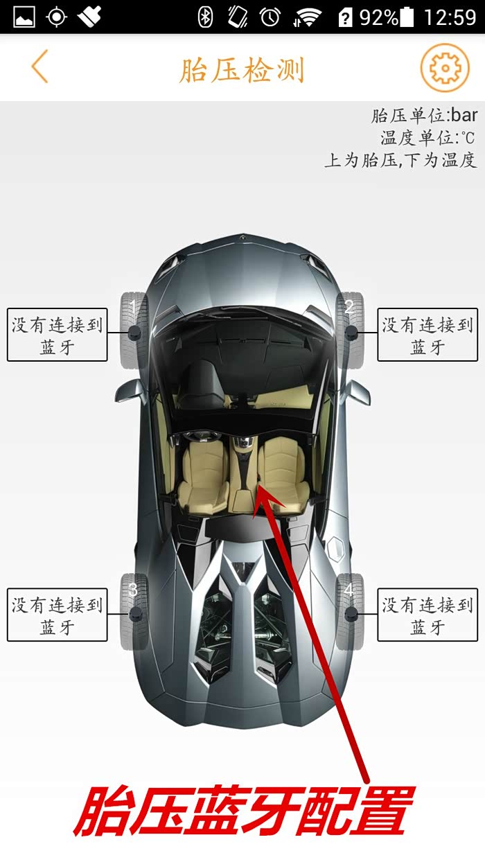 胎压配对界面,通过手机扫面传感器的二维码实现配对,配对成功后可以读取胎压信息,车胎温度信息。