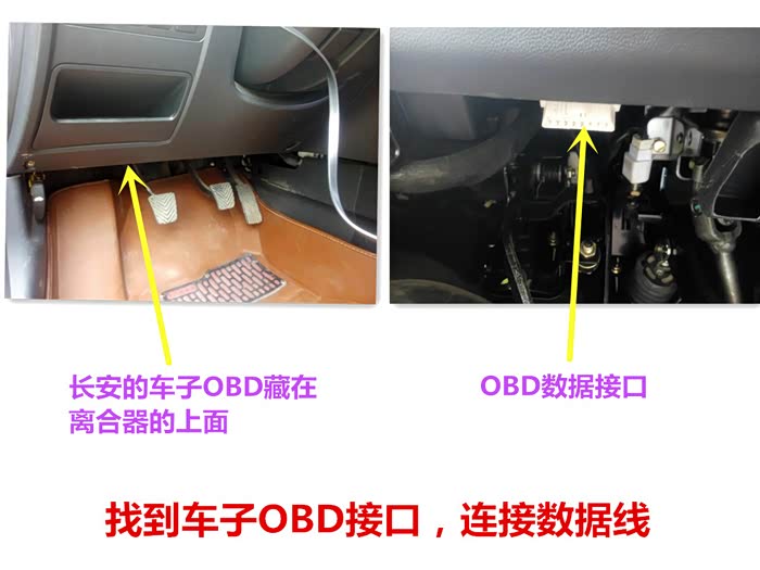 找到车子的OBD接口,OBD数据线插头连接好,车子的OBD接口如果不知道在什么地方,可以咨询4S,不过一般都很好找的