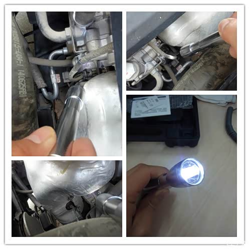 用手电筒检查发动机舱,排除隐患。因为发动机舱排布比较紧凑,想要仔细观察,必须借助手电筒。