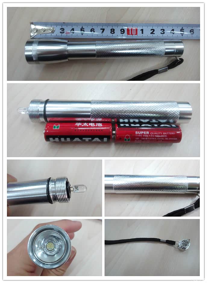 PS:这个手电筒开关比较奇葩,顺时针拧紧头部,灯泡灭。逆时针松动头部,灯泡亮,呵呵呵呵。。。。。。研究了两分钟,没找到开关,上火,我的智商啊!!!