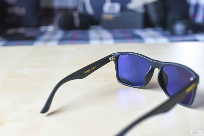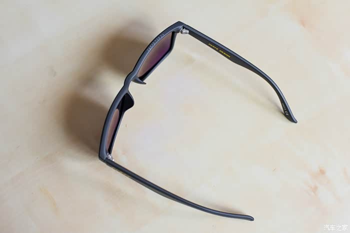 墨镜的内层使用了蓝色镀膜材质,这个很绚。虽然内层是镀膜材质,但在实际使用中镀膜并不会产生镜面反射的情况,所以丝毫不会影响驾驶。