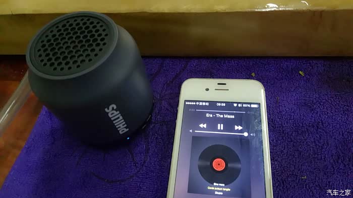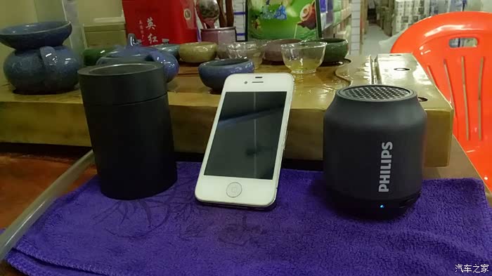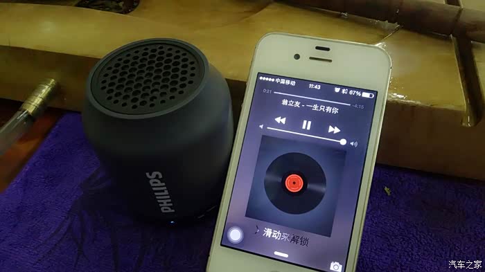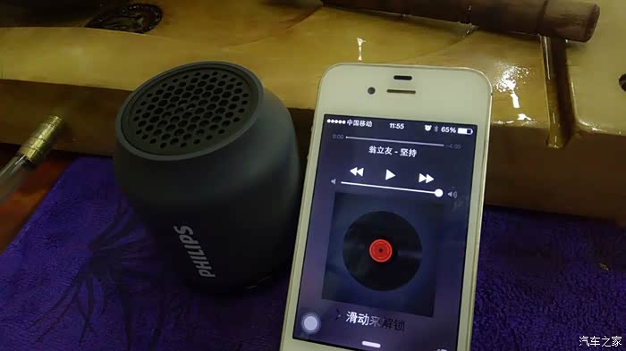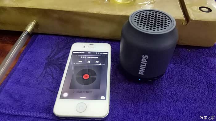 PHILIPS BT25 只支持蓝牙连接和AUX线传,不带插卡功能。没有音量调节键,由播放器控制音量大小。测试播放器用 Iphone 4s 担当。