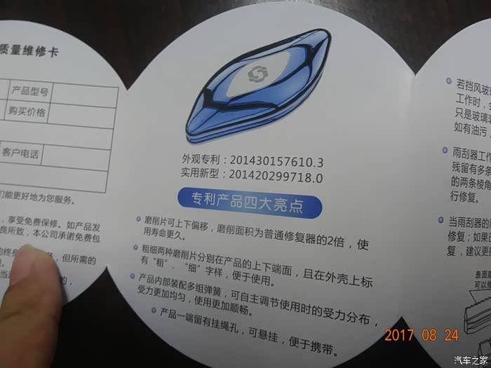 从计划买车到现在开车一年多每天都泡在汽车之家,在这里认识了很多朋友,一起学习,讨论有关开车过程的经验和危险因素。今天有幸分享一下帅贝特雨刷修复器