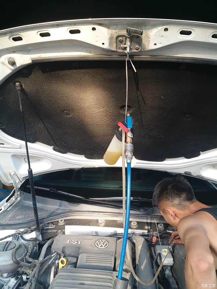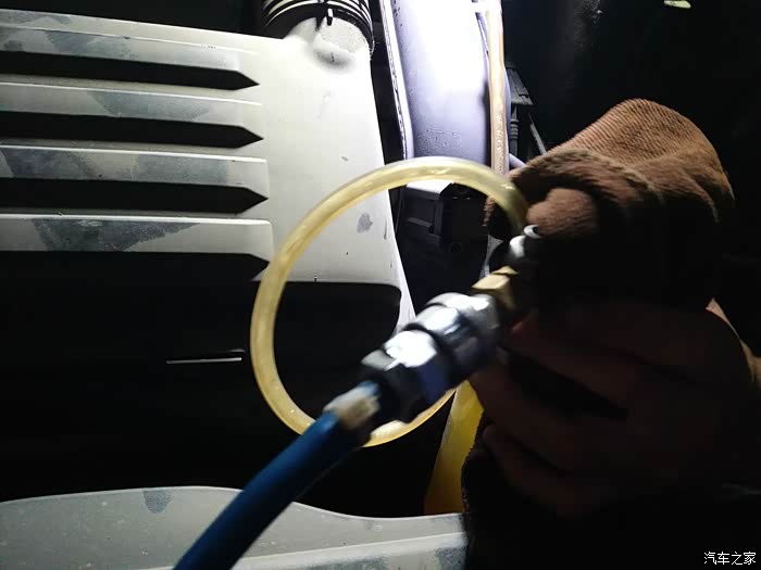 ,就这样四个轮胎全部搞一遍,然后油管里面的油全部搞完,再重新倒新油进去,总体的工程就结束了!