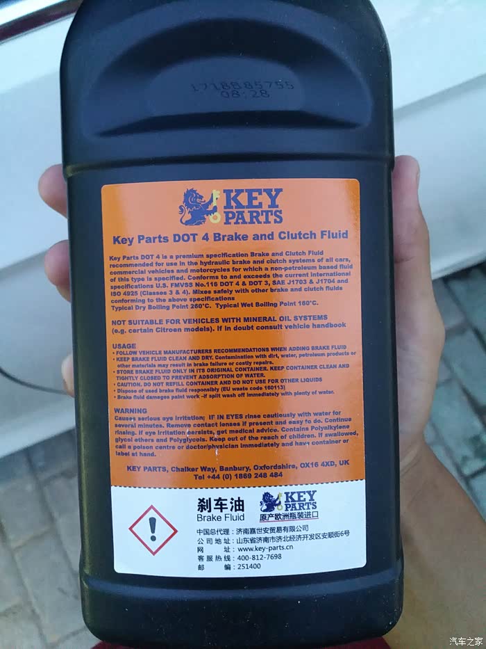 首先我的车是大众凌渡,使用了两年,至今跑了七万七千多公里,上一次已经换过一次国产刹车油,用着也还不错,但是没想到这次荣幸成为KEY PARTS众测中的一员,为了以后可以获得更多的试用资格,索性把国产刹车油换掉,用英国进口KEY PARTS刹车油