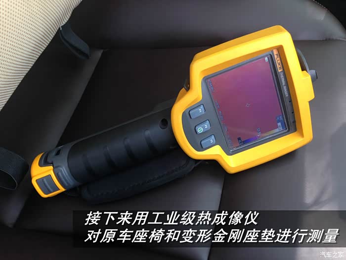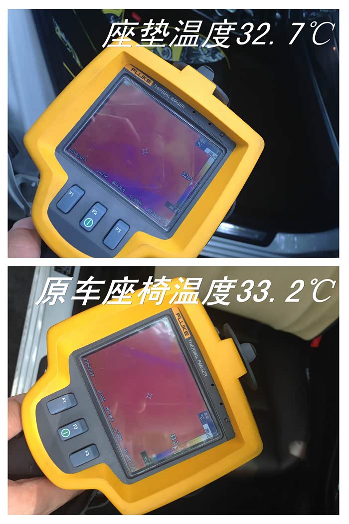 特意把公司的工业级热成像仪拿出来对比座垫和裸奔座椅的温度。懂的朋友应该认识这个牌子~~5位数的仪器。