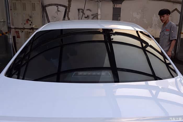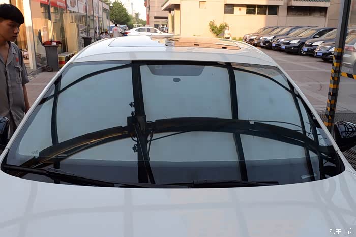 前风挡的膜显然比其他位置的颜色都要浅许多,这也是出于行车安全的考虑设计。
