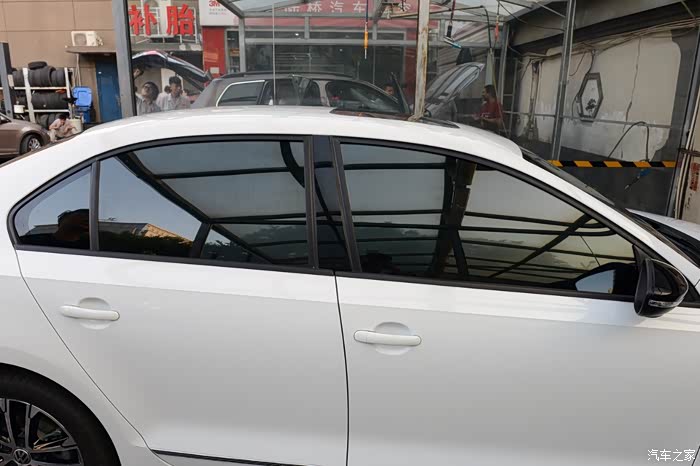 前门已经帖好了,后门还没贴,对比一下效果还是非常明显的。贴了膜的前门私密性已经不言而喻了。