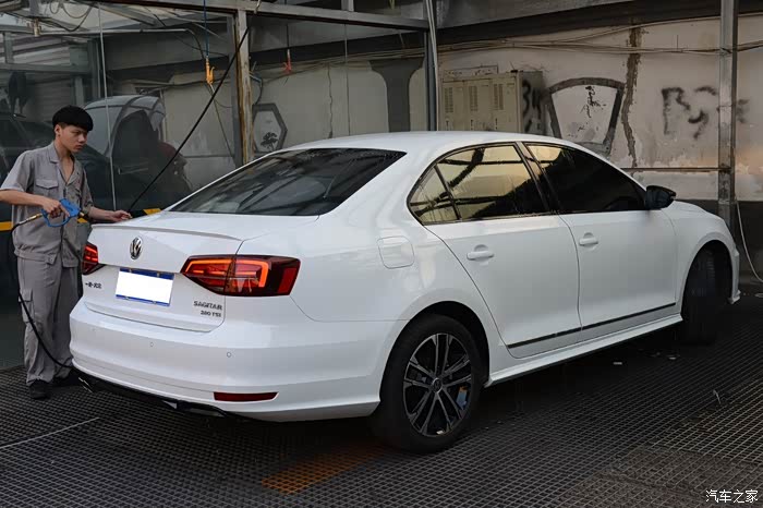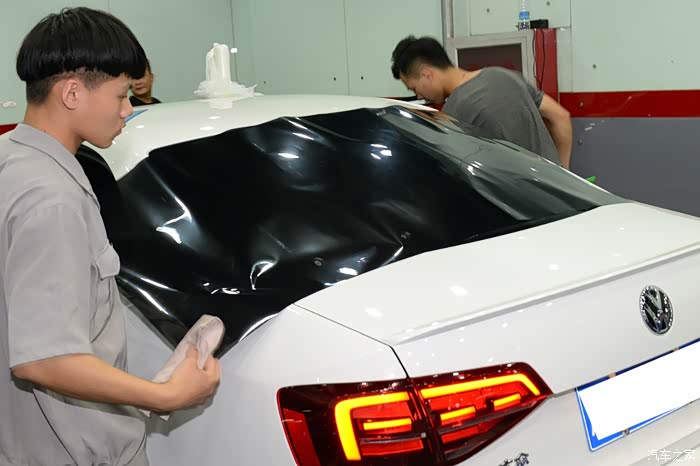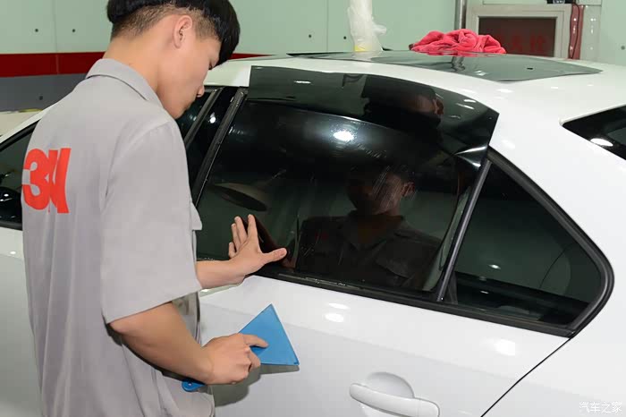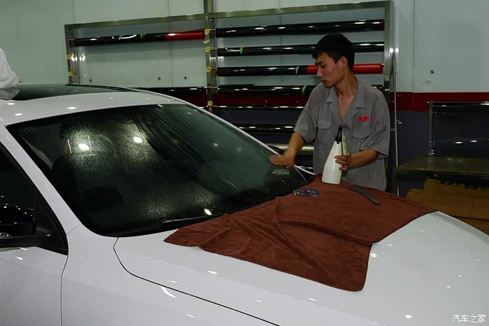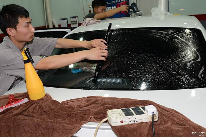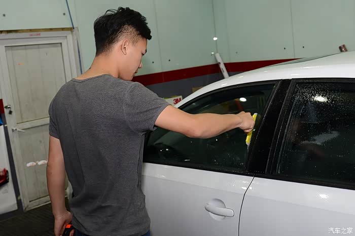 贴膜之前的第一道工序——洗车,尤其是要将车窗洗干净。