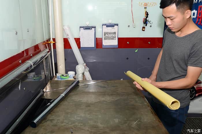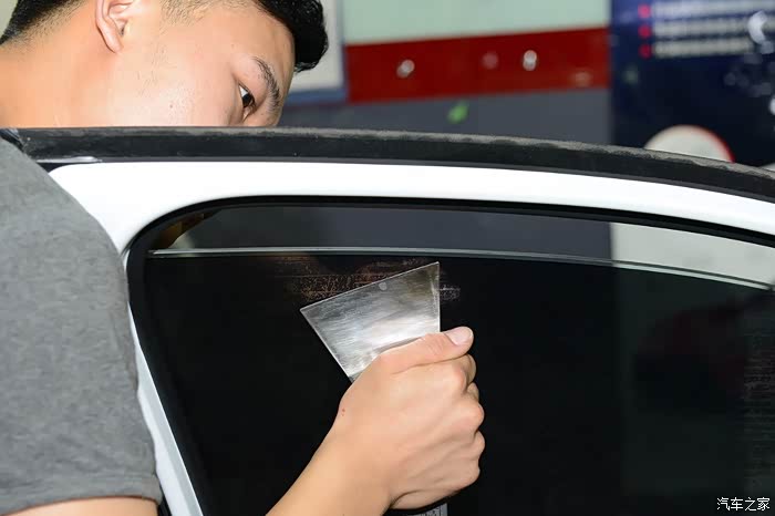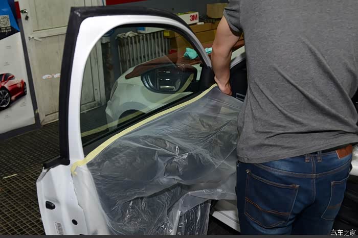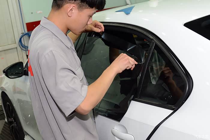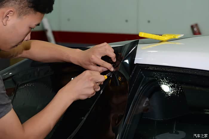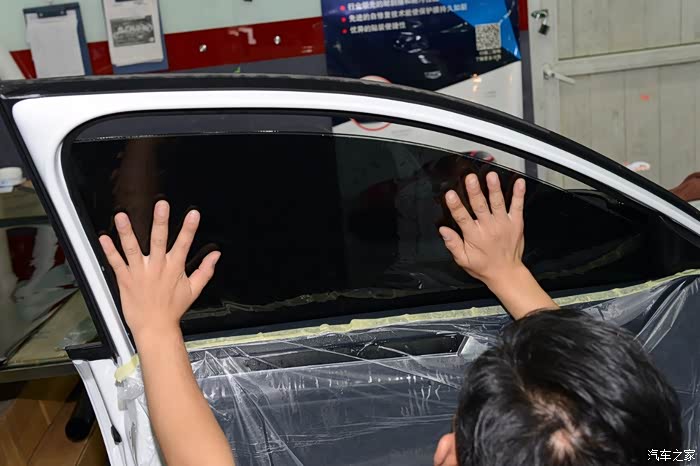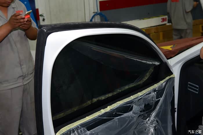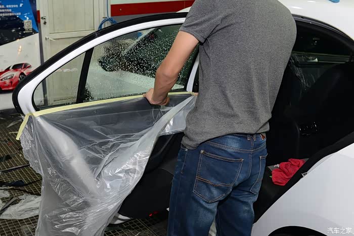 车模是要贴里面的,因为要给车窗喷大量的安装液,所以要在车门内侧贴上塑料薄膜用于防水。