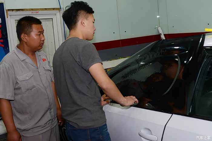 小哥此时被安排去才后门三角窗的膜了