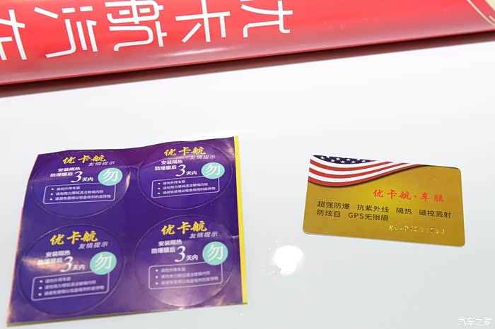 里面还有四张贴纸(防止贴完膜后,不小心开车窗用的,贴过膜的都知道),还有一张会员卡。