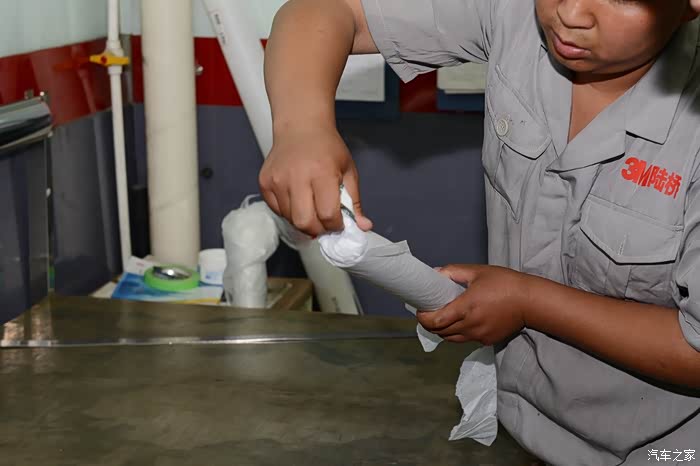 裁剪完毕以后卷起来,这样方便拿到车内去贴上