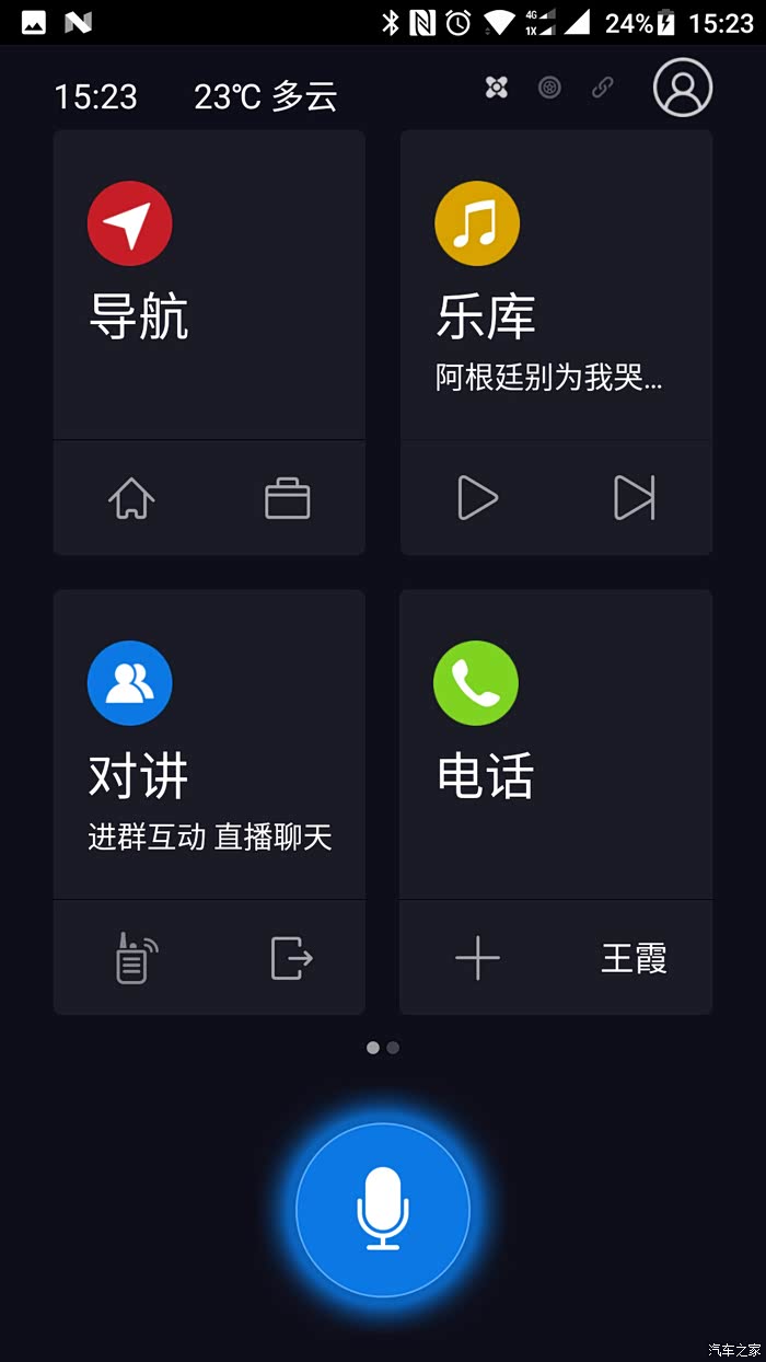 从左上角开始,第一个是导航,按下去方向盘上的导航按钮,手机上就出现这个导航画面。