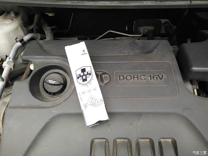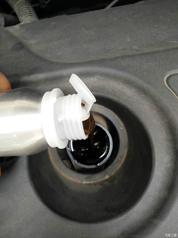 小心的把修复剂倒入发动机里。盖好机油盖,在拔插几次机油尺观察下机油液面正常就可以盖好引擎盖了。再点火发动,让发动机运转几分钟,让修复剂与机油充分融合。