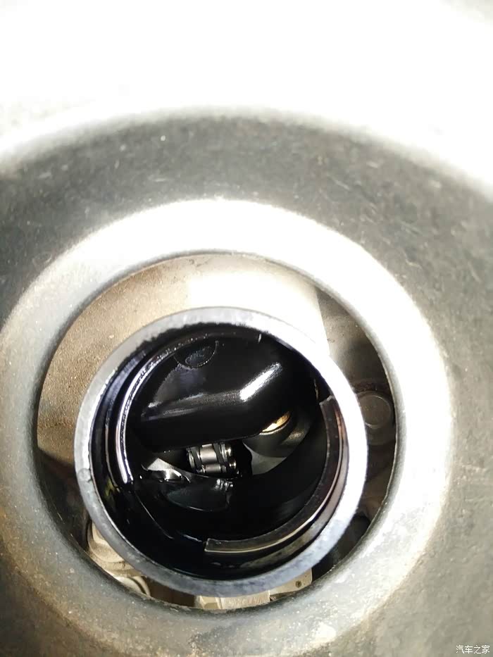 通过机油加注口可以看见里面的正时链条,油光铮亮,看样子润滑的不错。拧开机油盖后千万注意,别让异物、杂质什么的掉进发动机里了,那样会对发动机造成致命的损坏,用什么修复剂都于事无补。