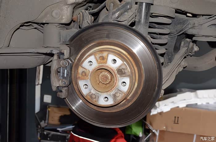 安装全新刹车片后的样子,看起来视觉效果好多了。