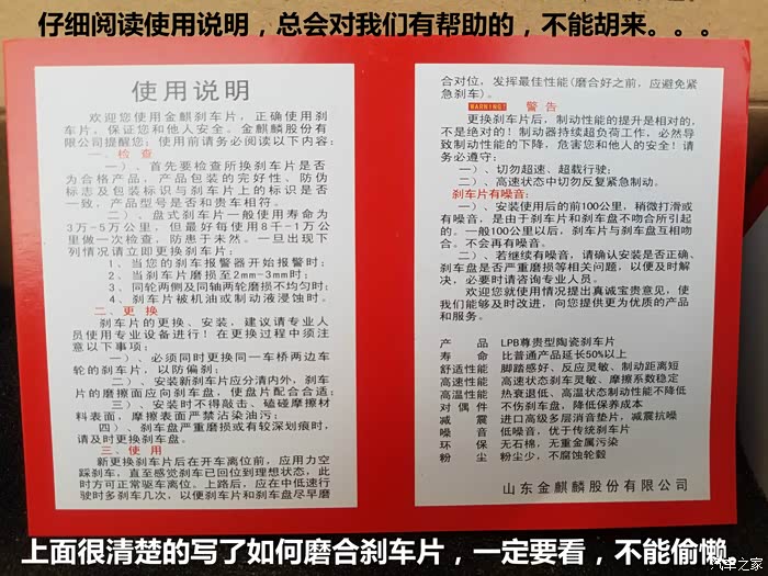 这些都是他的特点以及特色,或者说是厂家宣称的特点,就目前我刚刚装上的实际体验来说,确实相比我原来的制动效果和特性有所提升和改善,提升不是很大,但是绝对有,当然我这才刚刚换上,要想知道最终的效果还得按照说明书磨合几百公里呢!经过大量搜集用户实际感受来说,部分车友反映有 “啸叫” ,而我也没有遇到,我负责的说,我仔仔细细的用心体验了,确实没遇到!
