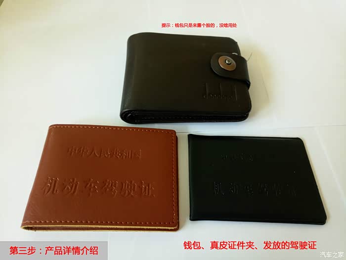 真皮驾驶证件夹,关于这个确实不是太常用的物件,只是在平常中放置自己钱包(反正随身携带)的驾驶证,此次真皮证件夹有多余的空间可以放置银行卡或会员卡等卡片。必须提到的是,确实不错,但是使用程度就有待考虑了。