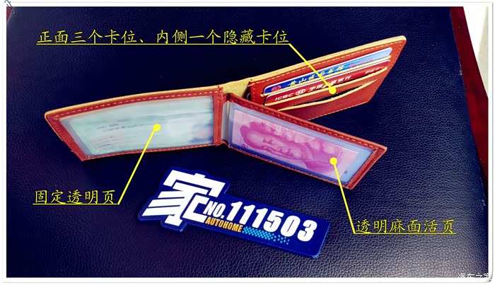 首先,固定的透明层,一般用来放置驾照。