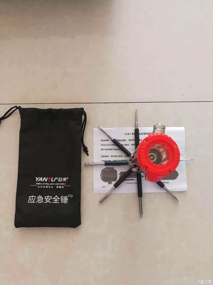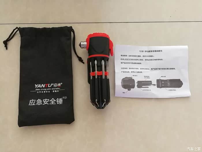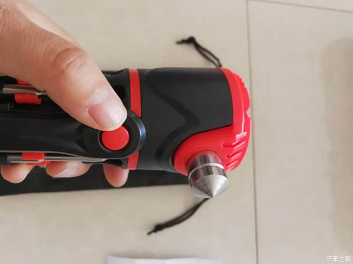 安全锤,救生逃生必备。在我查资料的时候,我发现了一个问题,虽说这个应急安全锤放在工具箱里很整洁,但是在我们出行的时候还是应该放到驾驶员能够方便拿到的地方,如果遇险要自救逃生的时候,可以方便取出并砸碎玻璃窗门以顺利逃生。