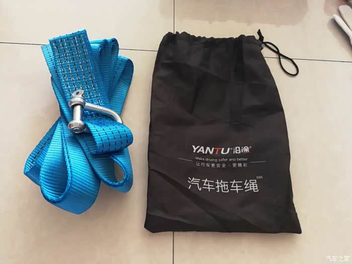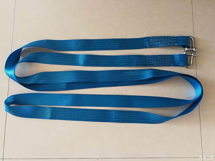 汽车拖车绳,5米5吨。这个是否结实还待测试,本来想约个车试下的,但是考虑到实际陷困,用拖车绳脱困的时候,重量和在平地的不一样,就暂且作罢了。