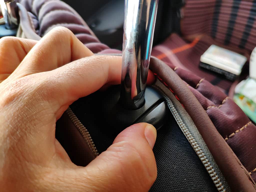 调整头枕高低十分简单,通过按压头枕支杆下部的开关即可进行头枕高低的上下调节。