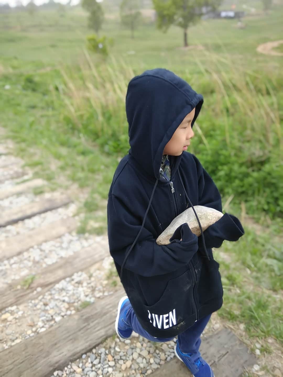 参观完纪念馆,附近的马场滑雪场逛起。孩子开始撒欢了,娃娃怀里抱着一块大圆石头,兴冲冲跑了跟我说,妈妈,你看我捡了个恐龙蛋。在大自然面前,孩子玩什么都是欢乐的。