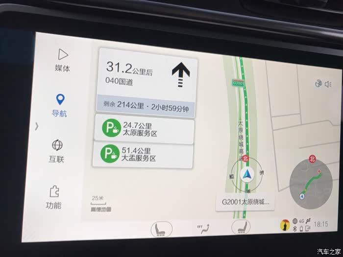 高速时,高德地图会实时提醒剩余里程和距离,同时提醒下一服务区距离,方便车主通过导航合理安排进服务区加油时间。