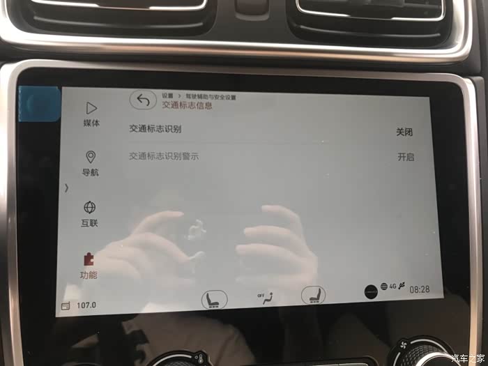 交通标志识别出的40公里限速后,会在刻度表的40公里时速上划红线。