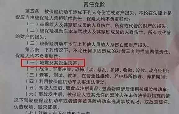 其实在汽车保险中,大多数汽车保险产品把地震都列为免责条款。目前市场上现有的机动车商业第三者责任险、家庭自用汽车损失保险等相关险种,也将地震列为除外的责任,也就是说地震造成的车辆损失不在理赔范围之内。