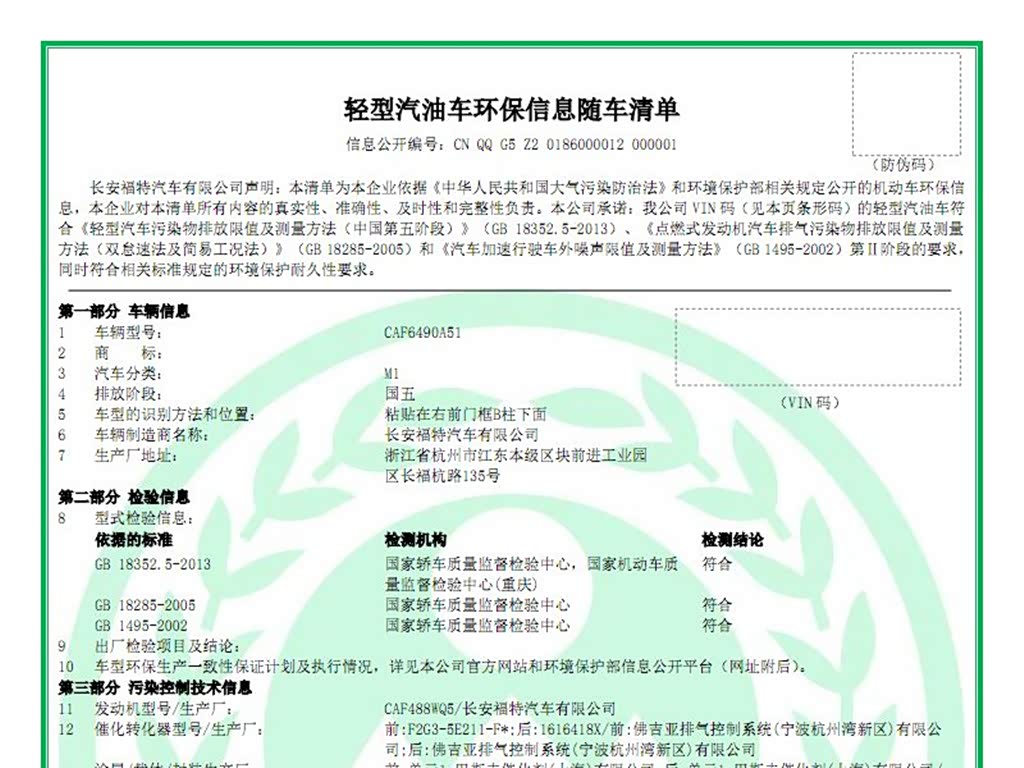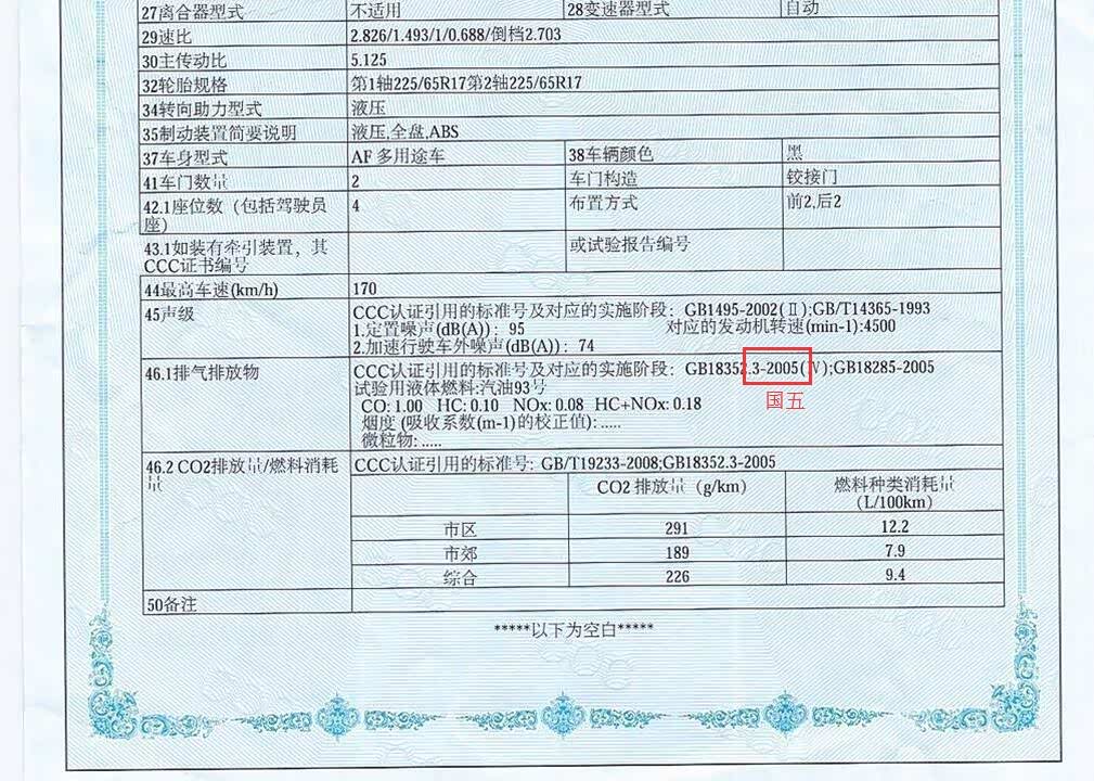 在购车是,随车都会配备有一个清单,叫做环保信息随车清单。上面有明确的排放标准公示。