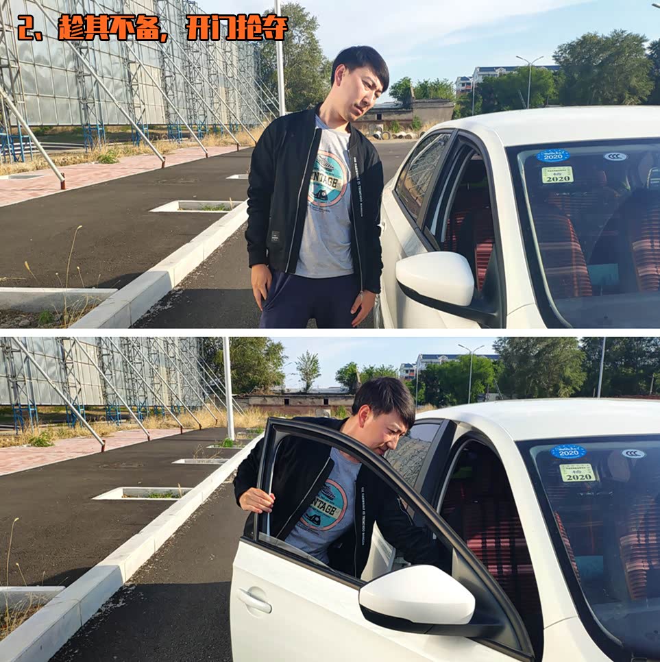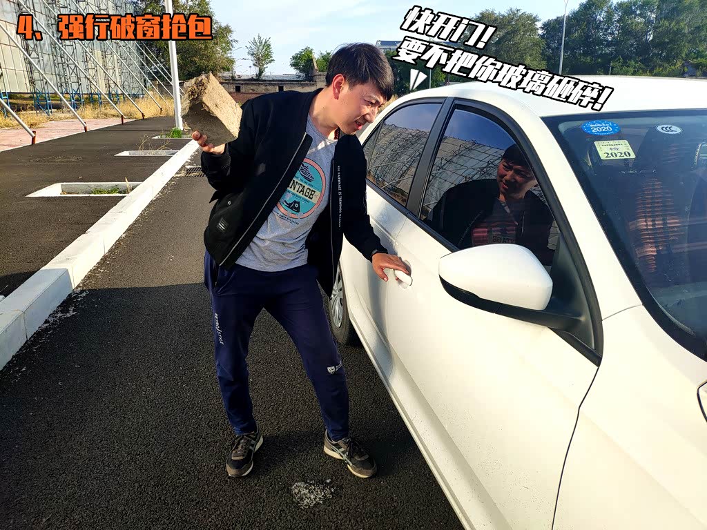 这种案例较少,一般都是发生在车门已锁、车门已关的情况下。丧心病狂的劫犯,有可能情急之下破窗抢劫。遇到这种情况,我们可以一脚油门,能跑就跑。