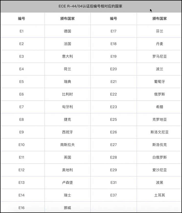 购买国内的儿童座椅首先要看两个认证,一个是3C认证即国家强制性产品认证,一个是ECER-44/04认证,当然只看ECE认证还不算完,这篇文章中有关于该认证的详细介绍《购买时需认清!解析儿童安全座椅认证》大家可以在用车频道查看。简单来说,ECER-44/04认证后面都会带有一个字母加数字的组合,如E