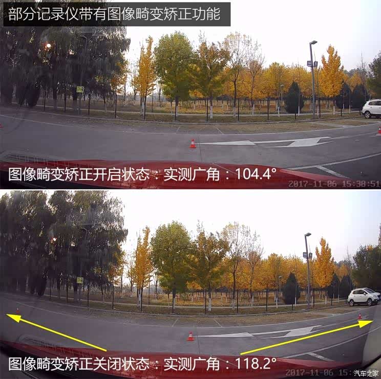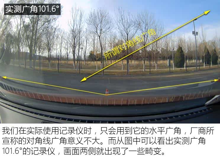 一味的追求大广角(水平)也会造成画面两端出现较大畸变,最终会影响到查看画面上的关键信息。那么根据从业者的经验来看,对角线广角在150°以内,水平广角在110°左右是可以满足日常行车取证所需的。